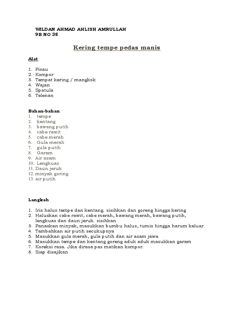 Kering Tempe Pedas Manis Tugas Bahasa Inggris