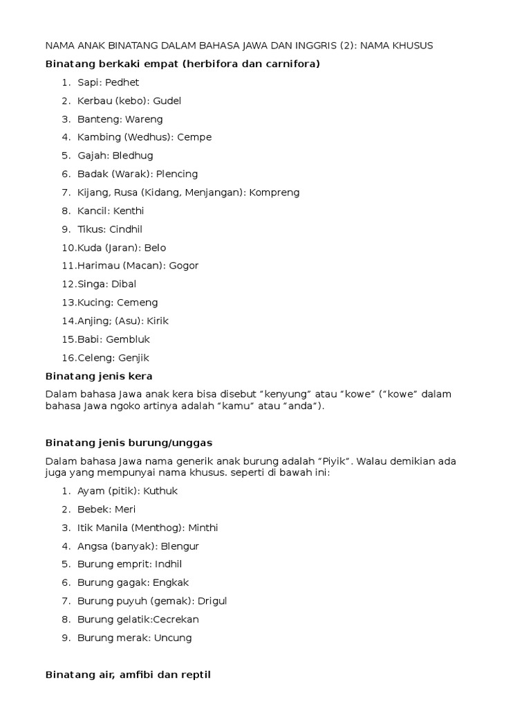 Doc Nama Anak Binatang Dalam Bahasa Jawa Ariani Putri Academia Edu
