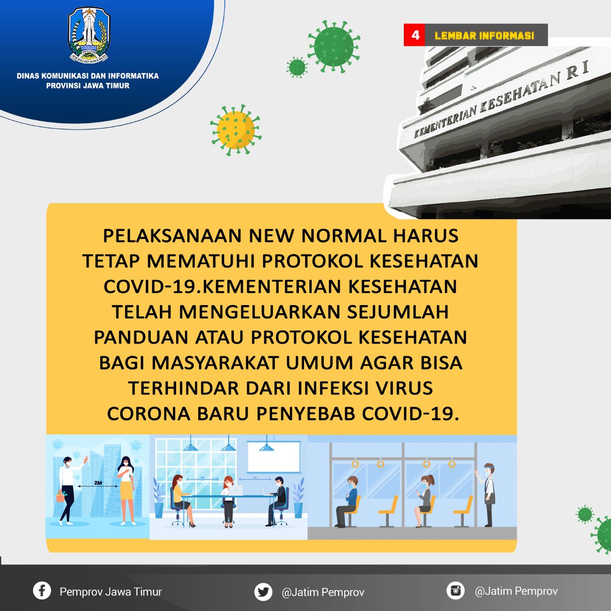 Pemprov Jawa Timur On Twitter Sobat Jatim Pelaksanaan New Normal Harus Tetap Mematuhi Protokol Kesehatan Agar Terhindar Dari Infeksi Virus Corona Penyebab Covid 19 Khofifahip Emildardak Kominfojatim Jatimcettar Cegahcovid19 Https T Co